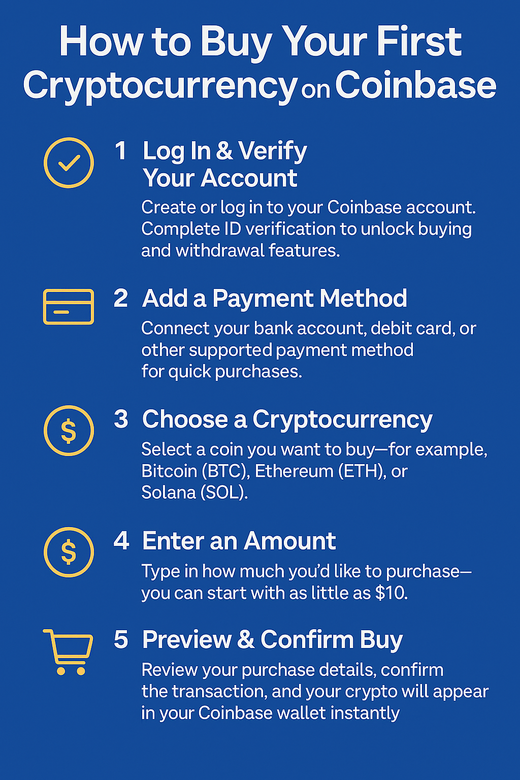 🪙 How to Buy Your First Cryptocurrency on Coinbase (Step-by-Step Beginner’s Guide) Meta Description: Learn how to buy your first